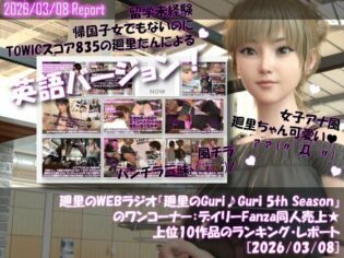 3DCG 【無料立読みフル漫画】【▲20】英語★廻里の自撮りWEBラジオ『廻里のGuriGuri(グリグリ)5thシーズン』のワンコーナー:デイリーFanza同人売上★上位10作品のランキング・レポート[2026/03/05]//一ノ瀬廻里//d_742300
