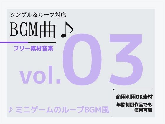 ループ再生できるBGMだから便利!シンプルで使いやすいループ(繰り返し再生)著作権フリーBGM シンプルでループ利用できるミュージック! 曲構成は短いですが繰り返せるので、 切れ目のない無限ループBGMやジングルとして使用できます! 以下の3種類のサウンド(音素材・音楽)が入っています。 【BGM印象】 ・ 01 軽快なミニゲーム風A ・ 02 軽…