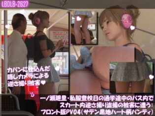 3DCG 【無料立読みフル漫画】一ノ瀬廻里・私服登校日の通学途中のバス内でスカート内逆さ撮り盗撮の被害に遭う:フロント版PV04(サテン黒地ハート柄パンティ)//一ノ瀬廻里//d_736879